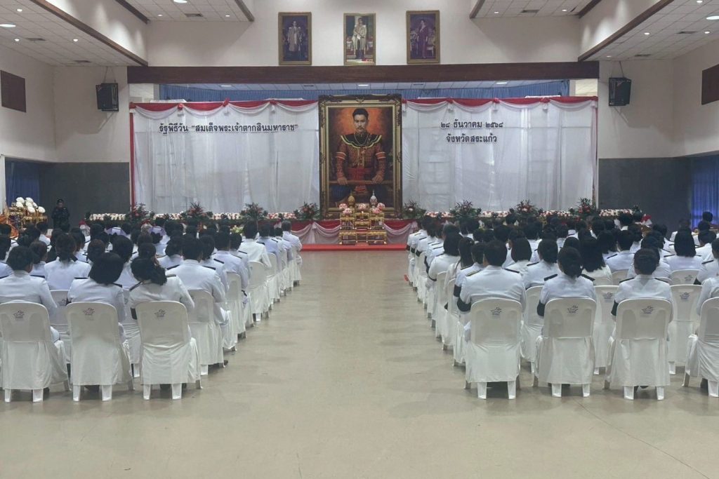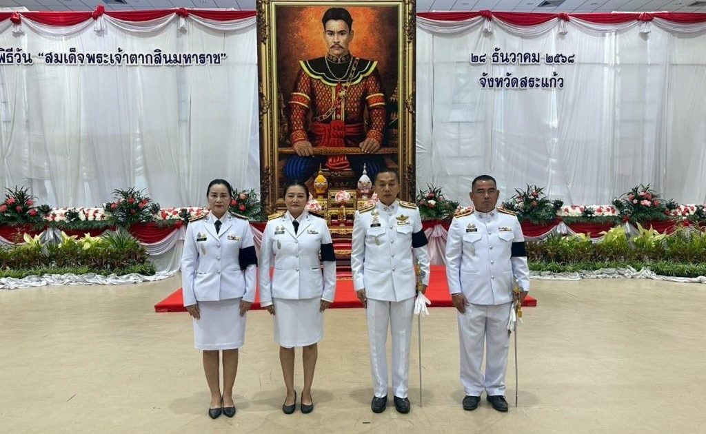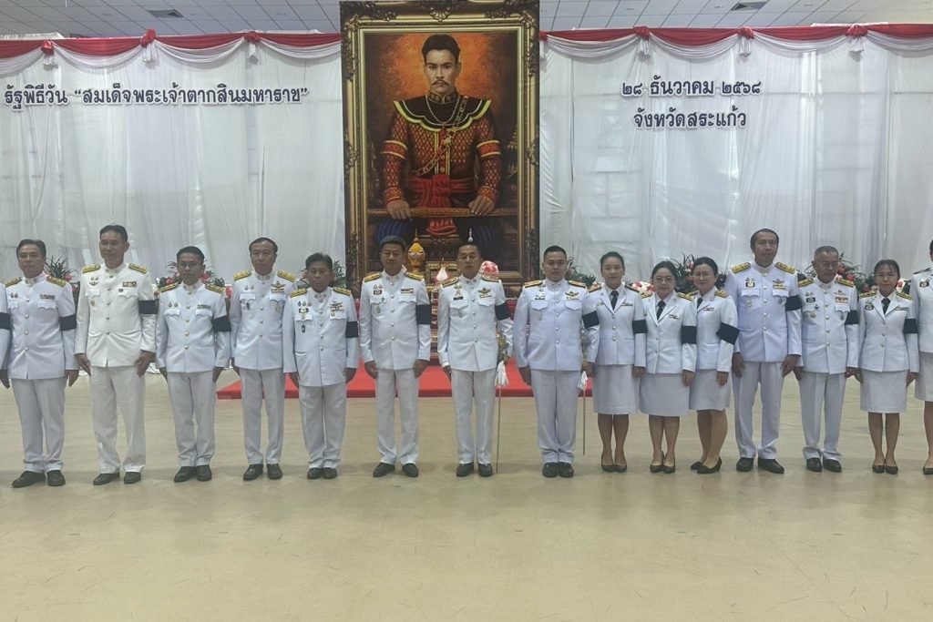 วันที่ 26 ธ.ค. 68 เวลา 08.00 น. พ.ต.อ.รุ่ง ทองมนต์ ผกก.ตม.จว.สระแก้ว พร้อมด้วยข้าราชการตำรวจในสังกัด ตม.จว.สระแก้ว เข้าร่วมพิธีวางพานพุ่มดอกไม้ถวายราชสดุดีเนื่องในวัน “สมเด็จพระเจ้าตากสินมหาราช”ณ หอประชุมปางสีดา ศาลากลางจังหวัด โดยมี นาย ปริญญา โพธิสัตย์ ผู้ว่าราชการจังหวัด เป็นประธานในพิธี