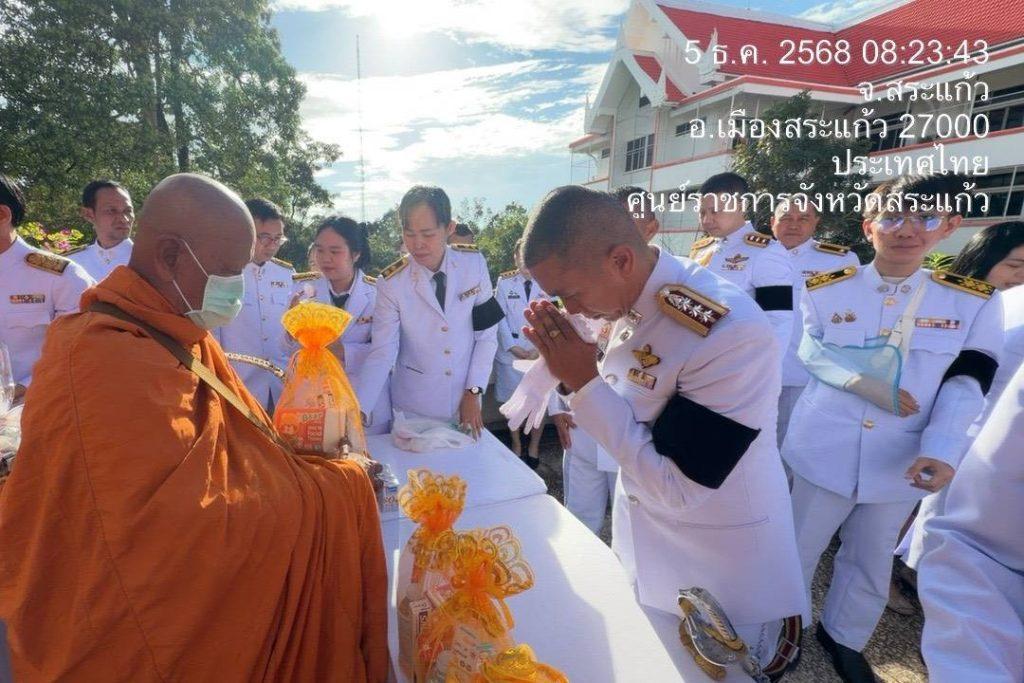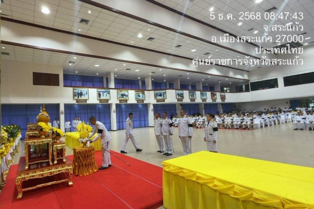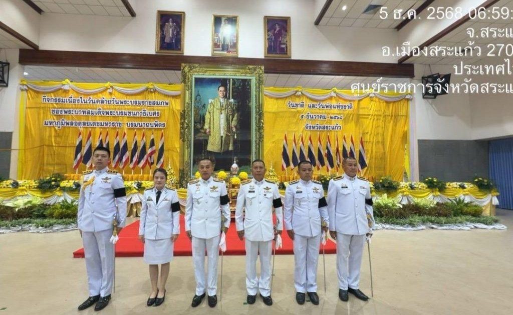 วันที่ 5 ธ.ค.68 เวลา 07.00 น. พ.ต.อ.รุ่ง ทองมนต์ ผกก.ตม.จว.สระแก้ว พ.ต.ท.จิรเดช พุฒินาทพัฒน์ รอง ผกก.ตม.จว.สระแก้ว พร้อมด้วยข้าราชการตำรวจในสังกัด ร่วมกิจกรรมเนื่องในวันคล้ายวันพระราชสมภพ พระบาทสมเด็จพระบรมชนกาธิเบศร มหาภูมิพลอดุลยเดชมหาราช บรมนาถบพิตร วันชาติ และวันพ่อแห่งชาติ พิธีสวดพระพุทธมนต์ทำบุญตักบาตรถวายพระราชกุศล กล่าวถวายราชสดุดี และพิธีวางพานพุ่มดอกไม้ถวายราชสักการะ เพื่อน้อมรำลึกในพระมหากรุณาธิคุณและแสดงความจงรักภักดีแด่พระบาทสมเด็จ พระบรมชนากาธิเบศ มหาภูมิพลอดุลยเดชมหาราช บรมนาถบพิตร ที่ได้สร้างคุณประโยชน์แก่ประเทศชาติ ณ หอประชุมปางสีดา ศาลากลางจังหวัดสระแก้ว อ.เมือง จ.สระแก้ว