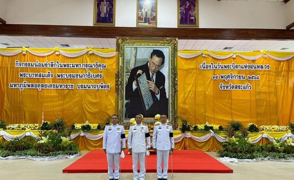 วันที่ 14 พ.ย.68 เวลา 08.00 น. พ.ต.อ. ณภัทรพงศ สุภาพร ผกก.ตม.จว.สระแก้ว มอบหมาย พ.ต.ท. จิรเดช พุฒินาทพัฒน์ รอง ผกก.ตม.จว.สระแก้ว พร้อมข้าราชการตำรวจในสังกัด เข้าร่วมพิธีวางพานพุ่มดอกไม้สดเนื่องในวันพระบิดาแห่งฝนหลวง ประจำปี 2568 ณ หอประชุมปางสีดา ศาลากลางจังหวัดสระแก้ว โดยมี นายเชาวเนตร ยิ้มประเสริฐ. รองผู้ว่าราชการจังหวัดสระแก้ว เป็นประธานในพิธี