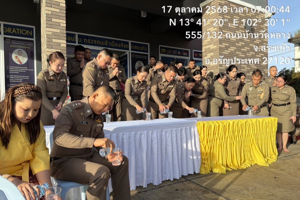 วันที่ 17 ต.ค.68 เวลา 07.00 น. พ.ต.อ.ณภัทรพงศ สุภาพร ผกก.ตม.จว.สระแก้ว พ.ต.ท.สิริฤกษ์ชัย เป้ามณี รอง ผกก.ตม.จว.สระแก้ว พ.ต.ท.จิรเดช พุฒินาทพัฒน์ รอง ผกก.ตม.จว.สระแก้ว และ พ.ต.ท.หญิง วลัยนันท์ แจ่มจุ้ย รอง ผกก.ตม.จว.สระแก้ว พร้อมด้วยข้าราชการตำรวจในสังกัด ตม.จว.สระแก้ว ได้จัดกิจกรรม “วันตำรวจ” ประจำปี 2568 ทำบุญตักบาตรพระสงฆ์ จำนวน 9 รูป เพื่อเป็นการน้อมรำลึกในพระมหากรุณาธิคุณ และถวายเป็นพระราชกุศลแด่พระบาทสมเด็จพระจอมเกล้าเจ้าอยู่หัว รัชกาลที่ 4 ณ บริเวณหน้าอาคารที่ทำการ ตม.จว.สระแก้ว ต.อรัญประเทศ อ.อรัญประเทศ จว.สระแก้ว