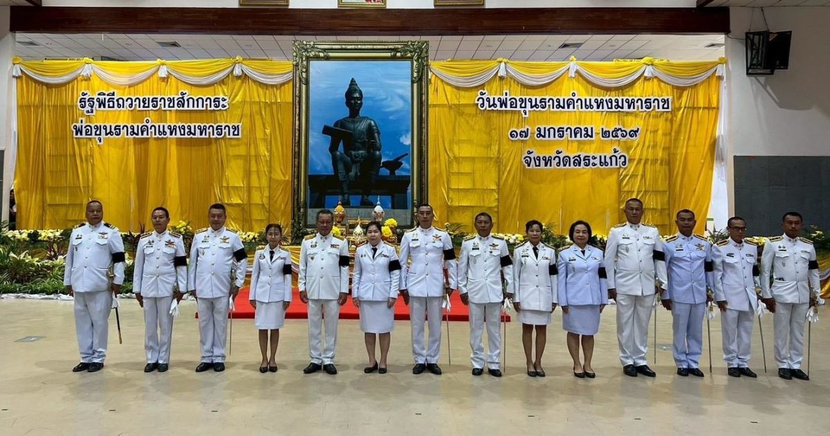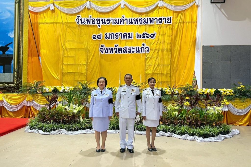 วันที่ 16 ม.ค.69 เวลา 08.30 น. ภายใต้การอำนวยการของ พ.ต.อ.รุ่ง ทองมนต์ ผกก.ตม.จว.สระแก้ว มอบหมายให้ พ.ต.ท.จิรเดช พุฒินาทพัฒน์ รอง ผกก.ตม.จว.สระแก้ว พร้อมด้วยข้าราชการตำรวจในสังกัด ตม.จว.สระแก้ว เข้าร่วมงานรัฐพิธีถวายสักการะ “พ่อขุนรามคำแหงมหาราช” (วันพ่อขุนรามคำแหงมหาราช) ณ หอประชุมปางสีดา ศาลากลางจังหวัดสระแก้ว โดยมี นายเชาวเนตร ยิ้มประเสริฐ รองผู้ว่าราชการจังหวัดสระแก้ว เป็นประธานในพิธี