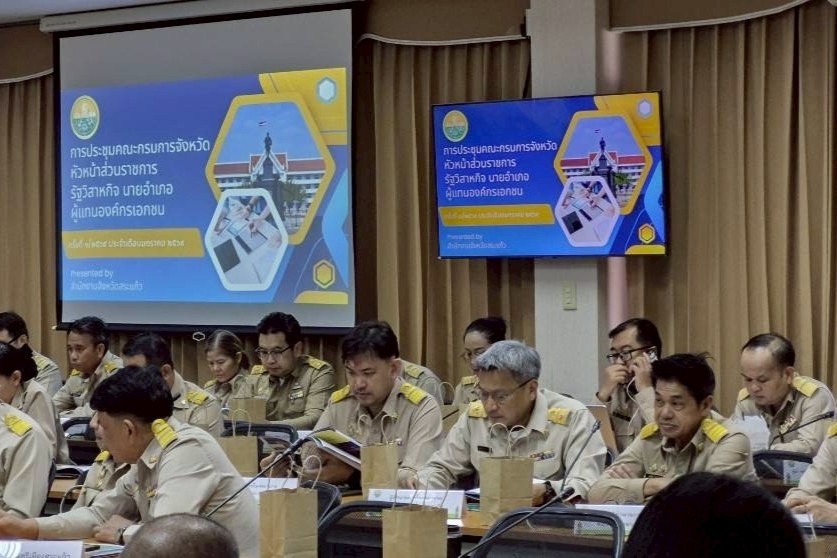 วันที่ 27 ม.ค.69 เวลา 09.30 น. ภายใต้การอำนวยการของ พ.ต.อ.รุ่ง ทองมนต์ ผกก.ตม.จว.สระแก้ว มอบหมายให้ พ.ต.ท.หญิง เณชาญา ศรีคล้าย รอง ผกก.ตม.จว.สระแก้ว เข้าร่วมประชุมคณะกรมการจังหวัดและหัวหน้าส่วนราชการฯ ประจำเดือน มกราคม 2569 ณ ห้องประชุมบูรพา ชั้น 4 ศาลากลางจังหวัดสระแก้ว ต.ท่าเกษม อ.เมืองสระแก้ว จว.สระแก้ว โดยมี นายปริญญา โพธิสัตย์ ผู้ว่าราชการจังหวัดสระแก้ว เป็นประธาน