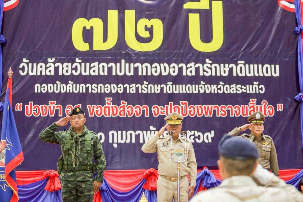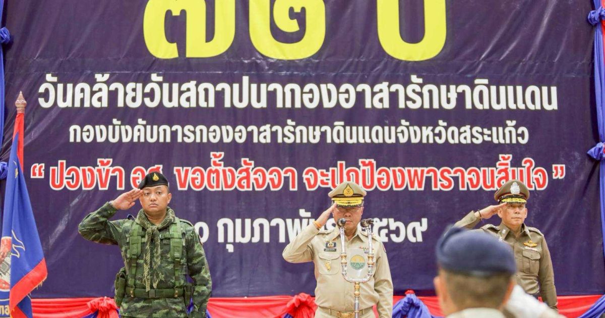 วันที่ 10 ก.พ.69 เวลา 08.00 น. ภายใต้การอำนวยการของ พ.ต.อ.รุ่ง ทองมนต์ ผกก.ตม.จว.สระแก้ว มอบหมายให้ พ.ต.ท.จิรเดช พุฒินาทพัฒน์ รอง ผกก.ตม.จว.สระแก้ว พร้อมด้วยข้าราชการตำรวจในสังกัด ร่วมกิจกรรมวันคล้ายวันสถาปนากองอาสารักษาดินแดน ครบรอบ 72 ปี ณ หอประชุมปางสีดา ศาลากลางจังหวัดสระแก้ว โดยมี นายเชาวเนตร ยิ้มประเสริฐ รองผู้ว่าราชการจังหวัดสระแก้ว เป็นประธานในพิธี