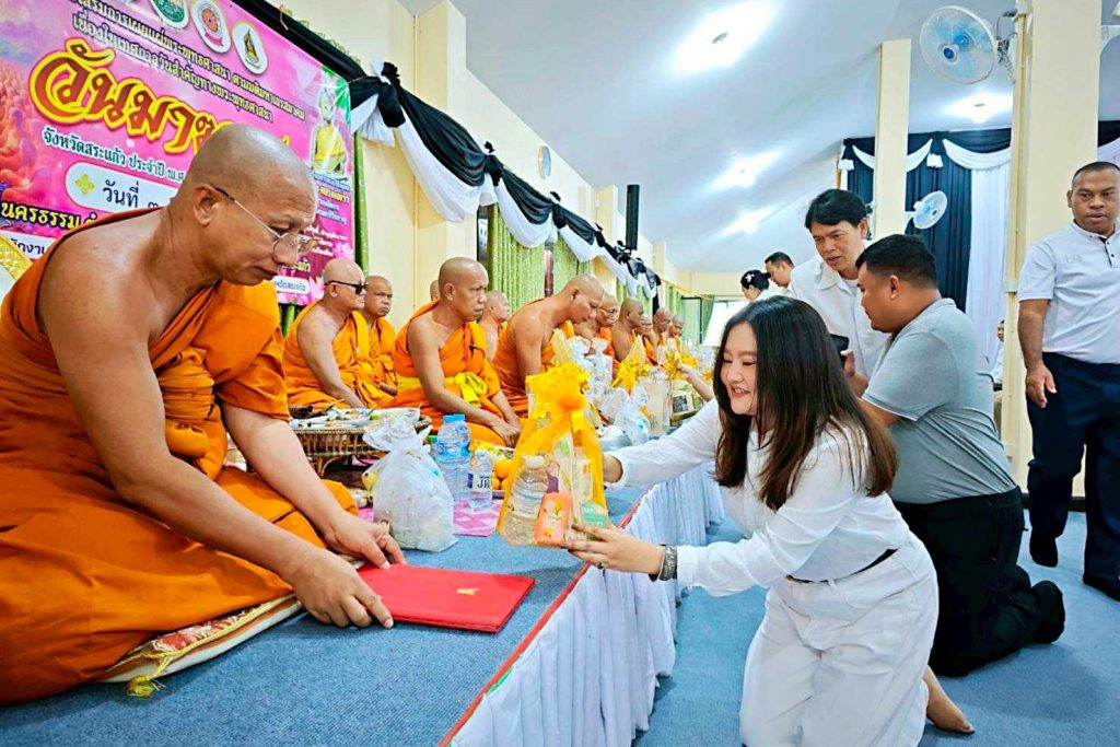 วันที่ 3 มี.ค.69 เวลา 07.00 น. ภายใต้การอำนวยการของ พ.ต.อ.รุ่ง ทองมนต์ ผกก.ตม.จว.สระแก้ว มอบหมายให้ พ.ต.ท.หญิง เณชาญา ศรีคล้าย รอง ผกก.ตม.จว.สระแก้ว และข้าราชการตำรวจในสังกัด เข้าร่วมกิจกรรมวันสำคัญทางพระพุทธศาสนา (วันมาฆบูชา) ประจำปีพุทธศักราช 2569 ณ วัดนครธรรม อ.วัฒนานคร จว.สระแก้ว โดยมี นาย เชาวเนตร ยิ้มประเสริฐ รองผู้ว่าราชการจังหวัดสระแก้ว เป็นประธาน