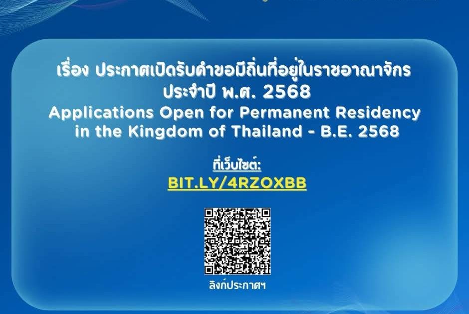 ðĒ Announcement: Applications Open for Permanent Residency in the Kingdom of Thailand â B.E. 2568