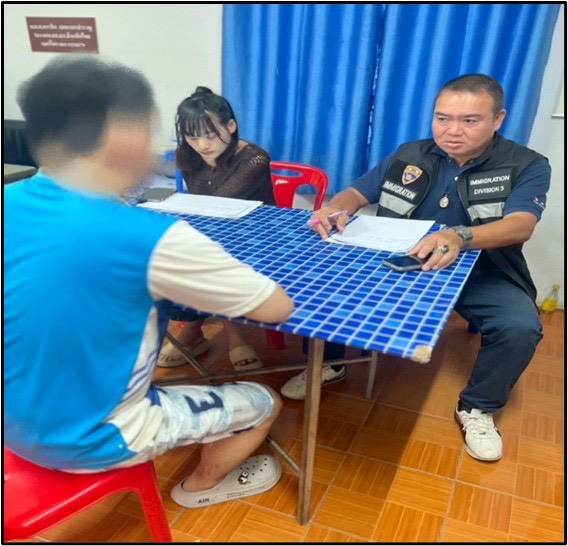 วันที่ 26 มีนาคม 2569 เวลา 07.00 น. พ.ต.อ.รุ่ง ทองมนต์ ผกก.ตม.จว.สระแก้ว, พ.ต.ท.กฤษณ กลิ่นขจร รอง ผกก.ตม.จว.สระแก้ว และ ว่าที่ พ.ต.ท.บุญเลิศ พลแก้ว สว.ตม.จว.สระแก้วสั่งการให้ จนท.งานสืบฯ (ชป.1) ปฏิบัติการร่วมกับ จนท.ตร.ตชด.124 คทร.ฉก.ตาพระยา จนท.ส.ทท.3 กก.2 บก.ทท.1 และ เจ้าหน้าที่ สภ.บ้านทัพไทย