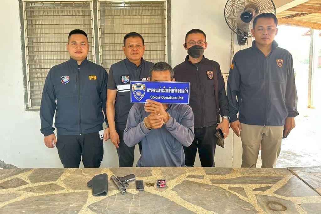 1.อาวุธปืนสั้นไทยประดิษฐ์ ขนาด.22 จำนวน 1 กระบอก ไม่สามารถตรวจสอบทะเบียนได้