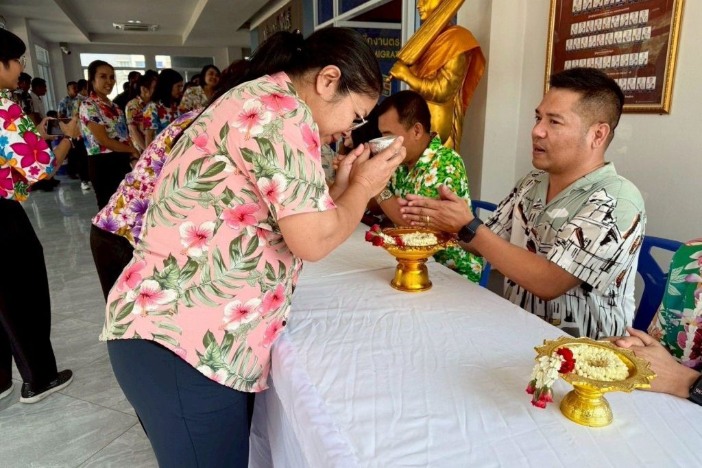 วันที่ 17 เม.ย.69 เวลา 14.30 น. พ.ต.อ.รุ่ง ทองมนต์ ผกก.ตม.จว.สระแก้ว พร้อมด้วยข้าราชการตำรวจในสังกัด ตม.จว.สระแก้ว เข้าร่วมกิจกรรม “สงกรานต์ 2569” โดยมีกิจกรรม สรงน้ำพระ รดน้ำขอพรเนื่องในเทศกาลสงกรานต์ ประจำปี พ.ศ 2569 เพื่อเป็นการอนุรักษ์วัฒนธรรมไทย แสดงความเคารพนับถือต่อผู้บังคับบัญชา ขอพรเพื่อความเป็นสิริมงคลในการปฏิบัติหน้าที่ รวมทั้งเสริมสร้างความสามัคคีภายในหน่วยงาน