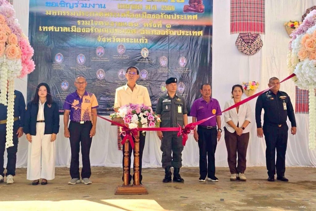 วันที่ 18 เม.ย. 69 เวลา 09.00 น. ภายใต้การอำนวยการของ พ.ต.อ.รุ่ง ทองมนต์ ผกก.ตม.จว.สระแก้ว มอบหมายให้ พ.ต.ท.หญิง เณชาญา ศรีคล้าย รอง ผกก.ตม.จว.สระแก้ว พร้อมด้วยข้าราชการตำรวจในสังกัด ตม.จว.สระแก้ว เข้าร่วมเป็นเกียรติในพิธีเปิดงาน“มหกรรมประกวดพระเครื่องเมืองอรัญประเทศรวมใจคนชายแดน ครั้งที่ 1” ณ ลานสยามมินทร์ เทศบาลเมืองอรัญญประเทศ อ.อรัญประเทศ จว.สระแก้ว