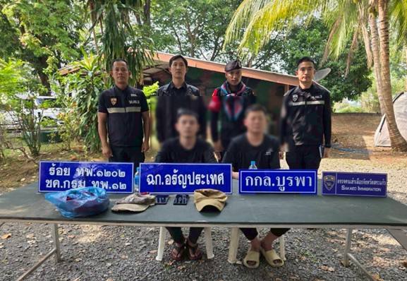 ตม.จว.สระแก้ว ร่วมกับหน่วยงานความมั่นคงในพื้นที่ บูรณาการร่วมออกปฏิบัติหน้าที่ในการปราบปราม สกัดกั้นการลักลอบข้ามแดน และการกระทำผิดกฎหมายต่าง ๆ โดยจับกุมคนต่างด้าวสัญชาติจีน หลบหนีเข้าเมือง จำนวน 2 ราย 21 เมษายน 2569 โดย admin / ผลการปฏิบัติงานของแต่ละสายงาน,ผลการปฏิบัติงานของสายงานสืบสวน ตม.จว.สระแก้ว ร่วมกับหน่วยงานความมั่นคงในพื้นที่ บูรณาการร่วมออกปฏิบัติหน้าที่ในการปราบปราม สกัดกั้นการลักลอบข้ามแดน และการกระทำผิดกฎหมายต่าง ๆ โดยจับกุมคนต่างด้าวสัญชาติจีน หลบหนีเข้าเมือง จำนวน 2 ราย————- วันที่ 21 เมษายน 2569 เวลา 11.50 น. พ.ต.อ.รุ่ง ทองมนต์ ผกก.ตม.จว.สระแก้ว. พ.ต.ท.กฤษณ กลิ่นขจร รอง ผกก.ตม.จว.สระแก้วและ ว่าที่ พ.ต.ท.บุญเลิศ พลแก้ว สว.ตม.จว.สระแก้ว สั่งการให้ จนท.งานสืบฯ (ชป.2) ปฏิบัติการร่วมกับ สภ.คลองลึก และ ทพ.1202————- ผลการปฏิบัติ เจ้าหน้าที่สามารถจับกุม————- ชายชาวจีน จำนวน 2 ราย————- บริเวณระหว่าง จต.อ.03-จต.อ.04 พิกัด TA437190 บ.ภูน้ำเกลี้ยง ม.5 ต.ป่าไร่ อ.อรัญประเทศ จว.สระแก้ว————- ข้อกล่าวหา————-เป็นบุคคลต่างด้าว (สัญชาติจีน)เข้ามาและอยู่ในราชอาณาจักรโดยไม่ได้รับอนุญาต————- เจ้าหน้าที่ได้นำตัวผู้ต้องหาพร้อมของกลาง นำส่ง พนักงานสอบสวน สภ.คลองลึก เพื่อดำเนินคดีตามกฎหมายต่อไป
