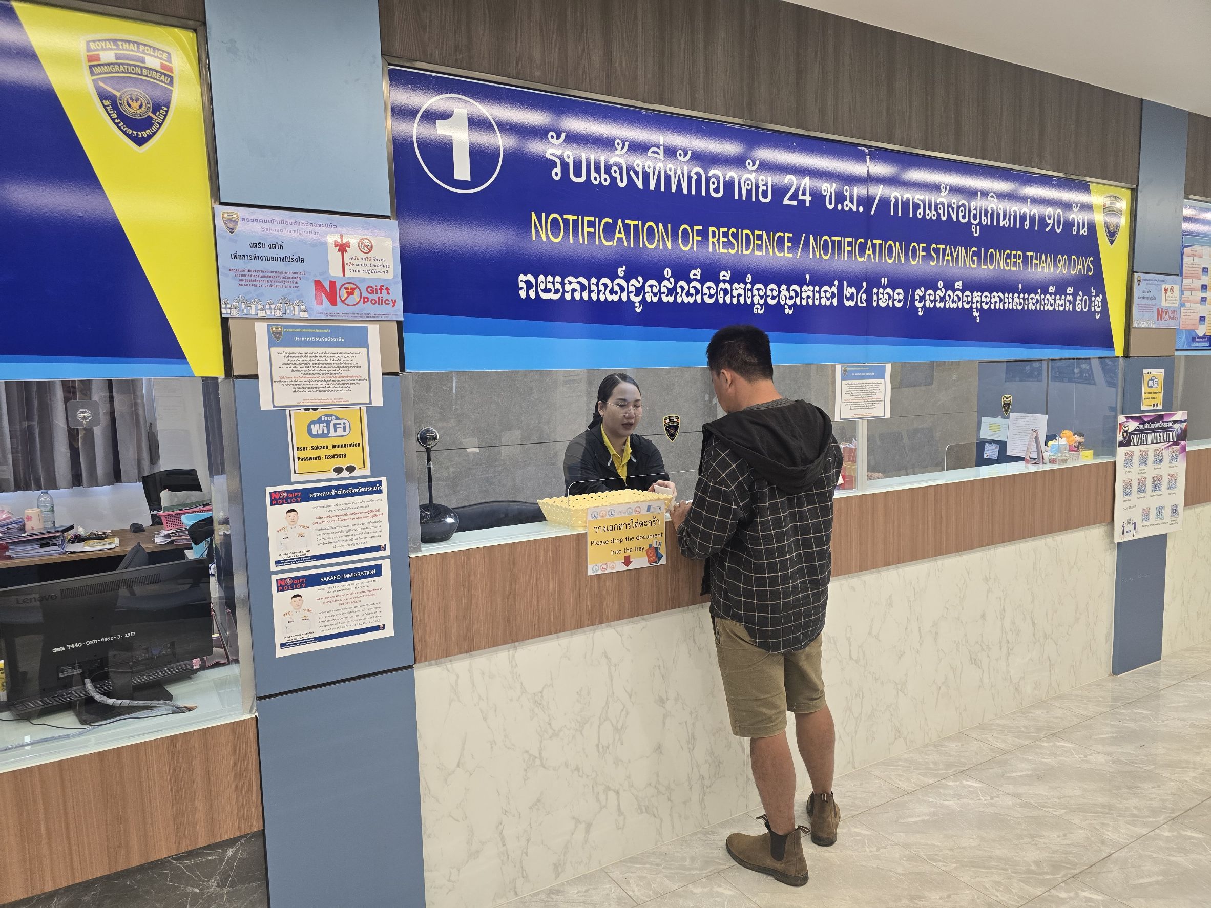 4. การเผยแพร่นโยบายไม่รับของขวัญ ของกำนัลทุกชนิด ในการปฏิบัติหน้าที่ ณ จุดให้บริการ ตม.จว.สระแก้ว