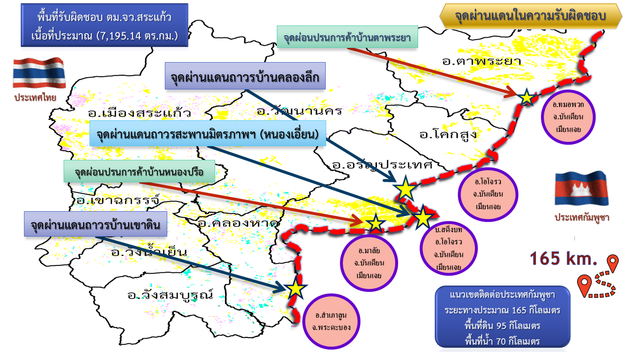 ตรวจคนเข้าเมืองจังหวัดสระแก้ว มีอำนาจหน้าที่ความรับผิดชอบ ครอบคลุมพื้นที่จังหวัดสระแก้ว